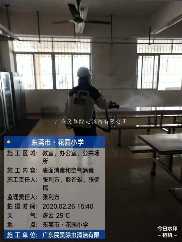 东莞民昊清洁公司帮助为民小学消毒施工中